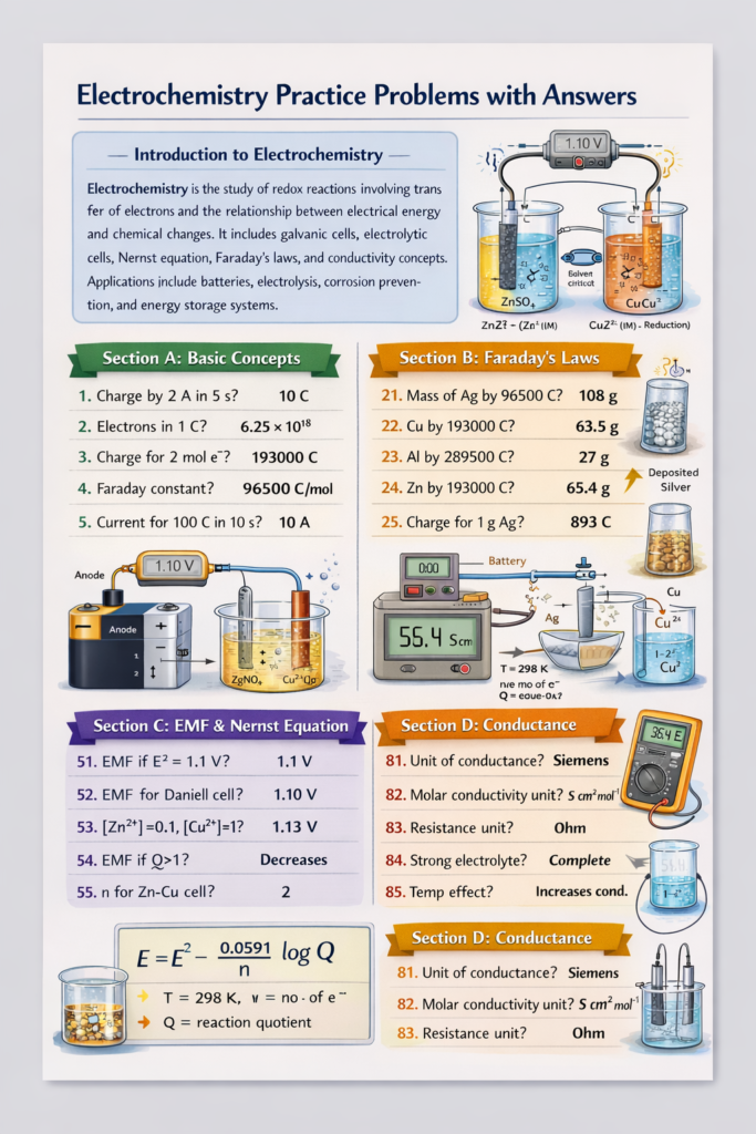 100 Electrochemistry Numerical Problems with Answers